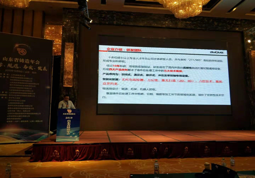 天津中屹铭科技有限公司于2019年12月9日应邀参加山东省铸造协会年会。会议中针对铸造后处理打磨切割五大技术瓶颈提出解决方案,我司通过十年研发与市场应用,研发路线从单轴砂轮形式、机床形式、串联机械臂形式直到现在的混联高刚性设备,成功解决了难题。推出四大产品序列应用于铸件后处理打磨切割,对于节省能耗、物流、后续机加等整套系统工艺有着巨大的改进,减少中间环节提升效率,节约成本。